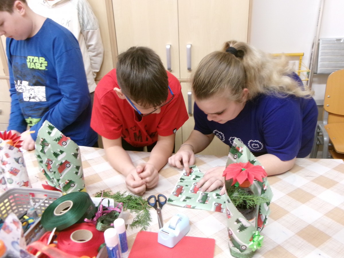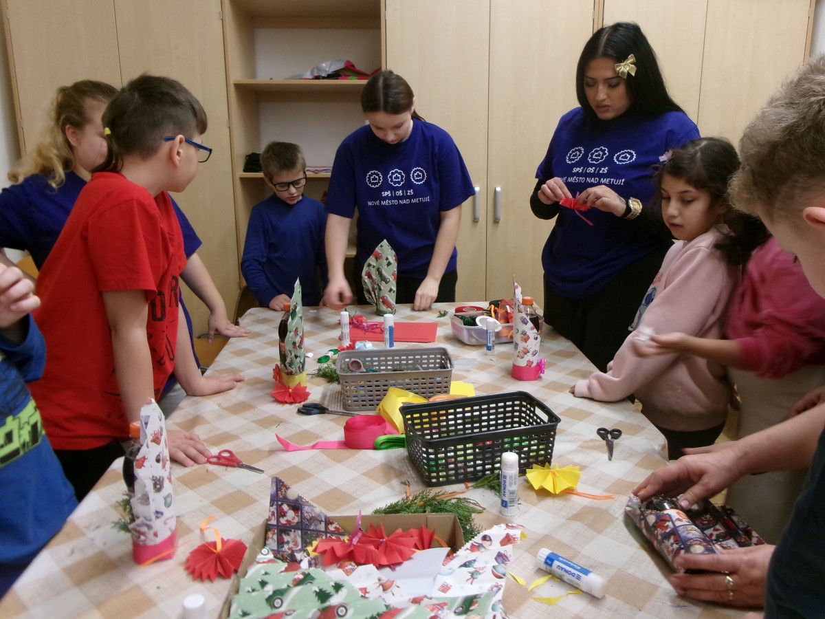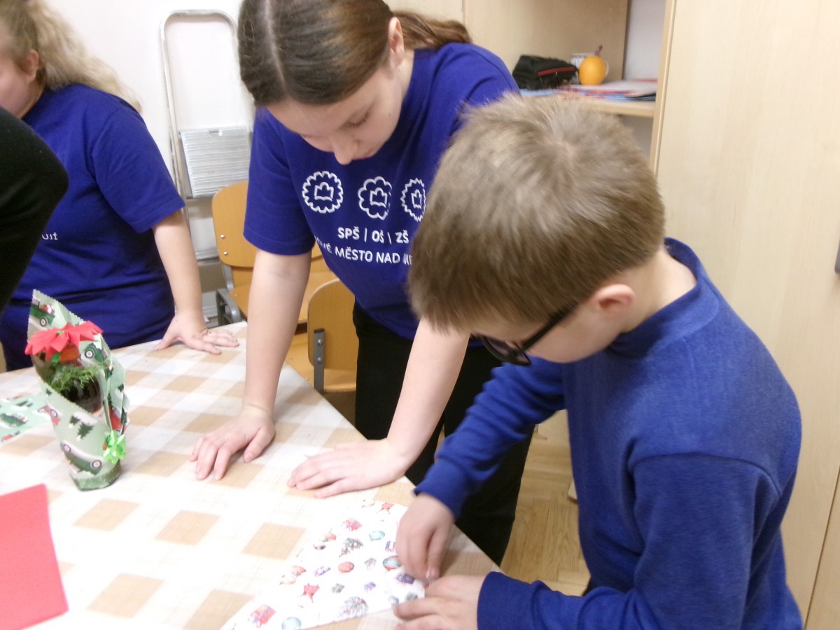 Ve středu 10. prosince proběhl na naší škole vánoční projektový den, který jsme jako každoročně uspořádali ve spolupráci s pedagogy a žáky SPŠ, OŠ a ZŠ Nové Město nad Metují. Tato spolupráce má u nás již svou tradici a i tentokrát přinesla velmi příjemnou atmosféru, nové zkušenosti a krásné výsledky. Studenti učňovských oborů si pro naše žáky připravili tvořivou dílnu zaměřenou na balení vánočních dárků.