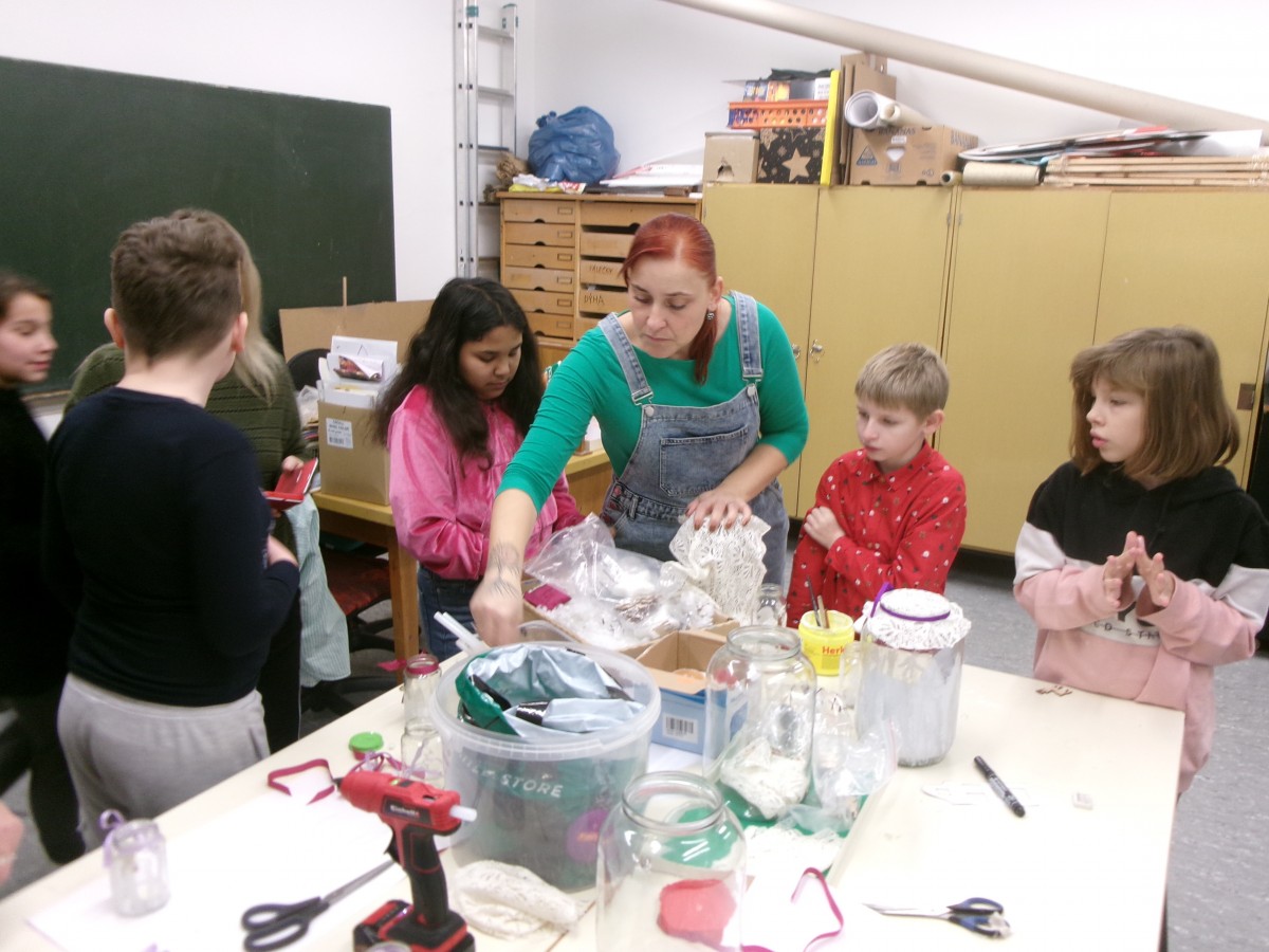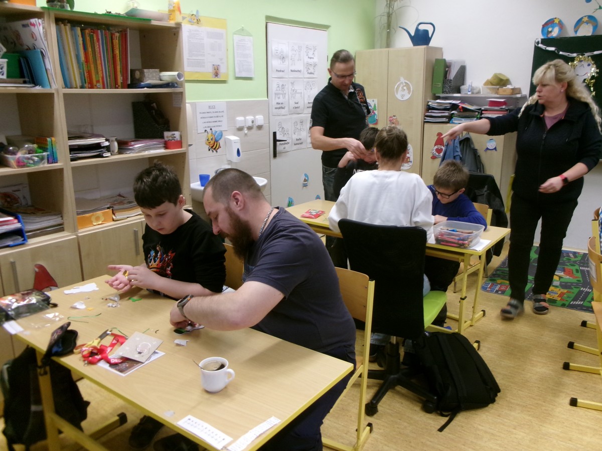Dnes jsme si užili tvořivé dopoledne, a to nejen se svými spolužáky, ale i s některými rodiči, kteří přišli podpořit svoje děti. Společně jsme vyráběli drobné vánoční dárečky z filcu, vánoční svícny, luštili jsme vánoční doplňovačky a labyrinty, zdobili pana Perníčka a paní Perníčkovou. A samozřejmě nechybělo ani pečení vánočního cukroví zvaného pracny a tvoření jablečných lízátek. Mňam!