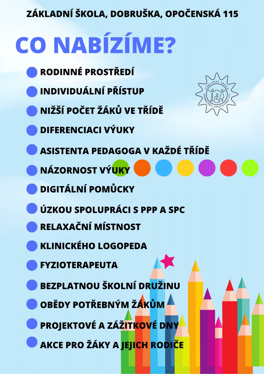 Vážení rodiče, milé děti, srdečně Vás zveme k zápisu do 1. ročníku, který je určen pro děti se speciálními vzdělávacími potřebami.